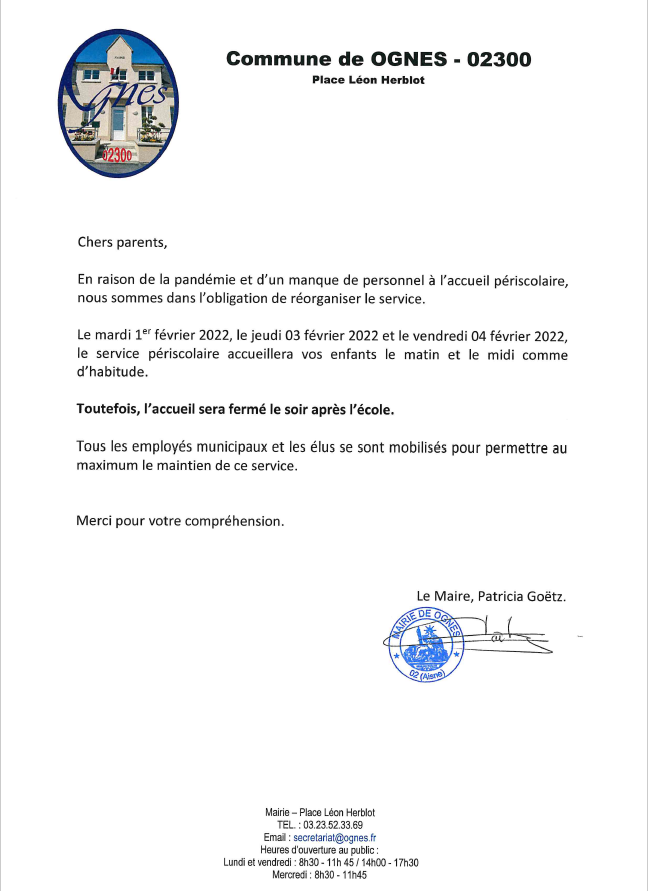 Navigation de l’article Inscription sur les listes électorales Calendrier de collecte des déchets 2022 Ognes